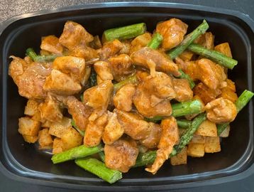 Enjoy our Grilled Lemon Chicken — a wholesome meal prep option made with cage-free chicken breast, roasted asparagus, and seasoned diced potatoes. Always cooked fresh with organic produce, no seed oils, and no ultra-processed ingredients. Perfect for clean eating, weight loss, or family-friendly dinners in Southwest Florida.