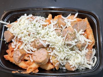 A traditional baked ziti with organic pasta, mild chicken sausage, home made marinara, topped with mozzarella cheese.